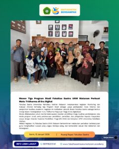 Pada hari Senin, 12 Januari 2026, Universitas Nahdlatul Wathan Mataram menyelenggarakan kegiatan Monitoring dan Evaluasi (Monev) internal yang dipimpin langsung oleh ketua tim Monev, sekaligus Ketua Lembaga Penjamin Mutu (LPM) universitas. Kegiatan ini dilaksanakan guna memastikan peningkatan mutu dan kualitas program studi, khususnya untuk tiga program studi di Fakultas Sastra, yaitu Sastra Indonesia, Sastra Inggris, […]