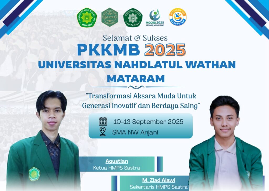 HIMPUNAN MAHASISWA PROGRAM STUDI SASTRA UNW MATARAM Mengucapkan: Selamat dan sukses PKKMB 2025UNIVERSITAS NAHDLATUL WATHAN MATARAM KAMPUS ANJANI Tema: ” Transformasi Aksara Muda Untuk Generasi Inovatif dan Berdaya Saing “ 🗓️ : 10-13 September 2025 📍: SMA NW Anjani Salam Read more